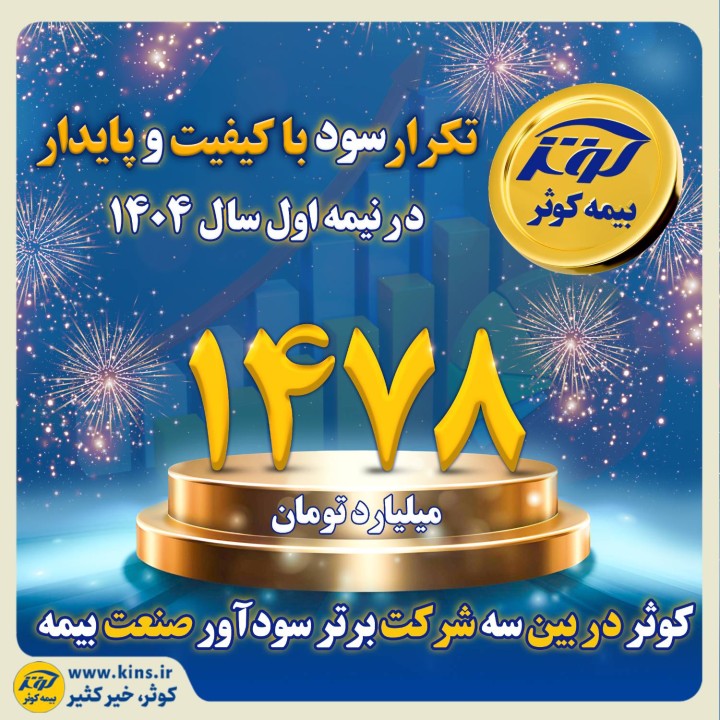 بیمه کوثر در شش ماهه اول سال ۱۴۰۴ با رشد ۱۶۷ درصدی نسبت به مدت مشابه، سود خالص بالغ بر ۱۴۷۸ میلیارد تومان را کسب کرد و همچنان در میان سه شرکت سودآور برتر صنعت بیمه قرار دارد.