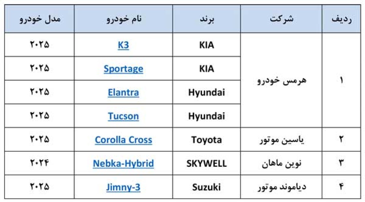 شرایط خرید آسان 7 خودروی وارداتی مدل 2025 با حساب وکالتی بانک صادرات ایران تا ساعت 14 روز دوشنبه 10 آذرماه فراهم شد.