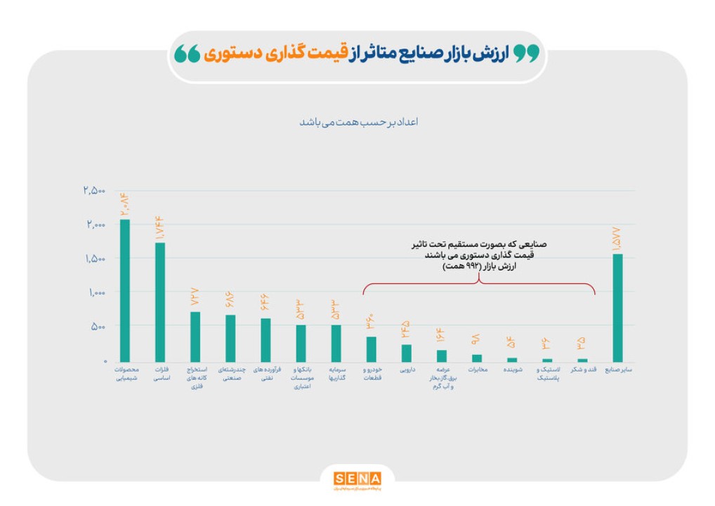 طبق برآوردهای اداره میزهای صنعت و رتبهبندی ناشران سازمان بورس و اوراق بهادار، «صنایع خودرو و ساخت قطعات، دارو، عرضه برق، گاز، بخار و آب گرم، مخابرات، شوینده، لاستیک و پلاستیک و قندوشکر» جزو 7 صنعتی هستند که بیش از صنایع دیگر تحت تاثیر قیمتگذاری دستوری قرار گرفتهاند.