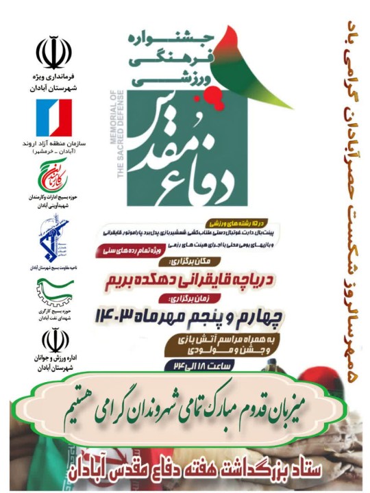 به گزارش روابط عمومی و امور بینالملل سازمان منطقه آزاد اروند، همزمان با فرارسیدن چهل و سومین سالروز شکست غرورآفرین حصر آبادان، سازمان منطقه آزاد اروند با مشارکت شرکت پالایش نفت آبادان، بسیج ادارات، ناحیه مقاومت بسیج شهرستان آبادان، بسیج کارگری شهدای نفت، فرمانداری و اداره ورزش و جوانان شهرستان آبادان، اقدام به برگزاری یک جشنواره و فرهنگی ورزشی خواهد کرد.