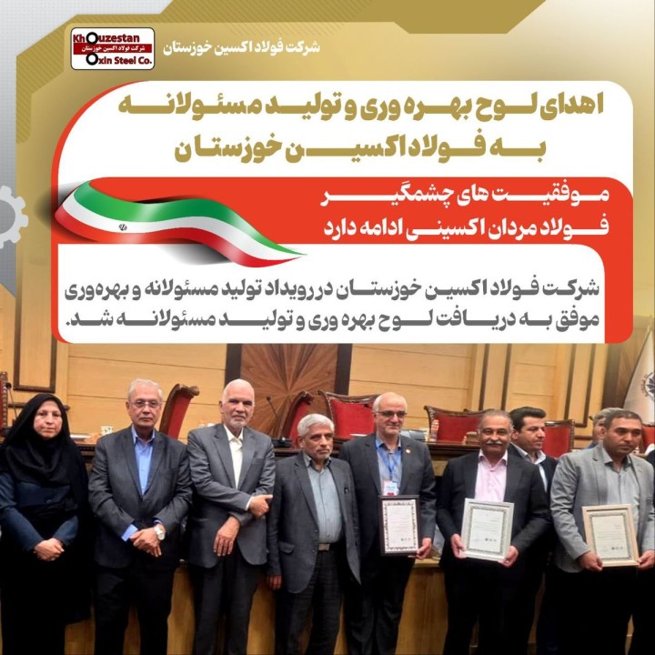 رویداد تولید مسئولانه و بهرهوری به تازگی با حضور فعال شرکت های تولیدی کشور برگزار شد که در فرآیند ارزیابی دستاوردهای شرکتهای شرکتکننده، شرکت فولاد اکسین خوزسنانموفق به دریافت لوح دستاورد مطلوب شد.
