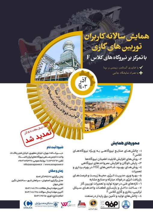 سید امیر طباطبائیان، مدیر ناحیه انرژی سیالات فولاد مبارکه:فولاد مبارکه با همکاری انجمن صنفی نیروگاههای ایران (اصنا) در ۲۷ الی ۲۹ آذرماه میزبان اولین همایش و نمایشگاه جنبی توربینهای گازی کلاس F کشور در اصفهان خواهد بود. این همایش درصدد است تعامل و هماندیشی فعالان این عرصه را تسهیل نموده و زمینه ارائه و حل چالشهای بهرهبرداری از این تجهیزات ارزشمند را فراهم آورد.