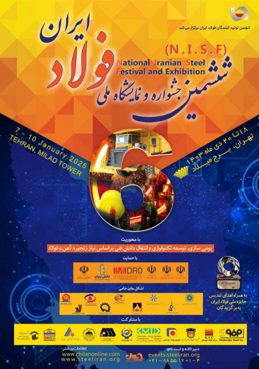 ششمین جشنواره و نمایشگاه ملی فولاد ایران با محوریت "بومی سازی و حمایت از ساخت داخل، توسعه فناوری و انتقال دانش فنی"؛ ۱۸ تا ۲۰ دی ماه امسال در برج میلاد تهران برگزار می شود.