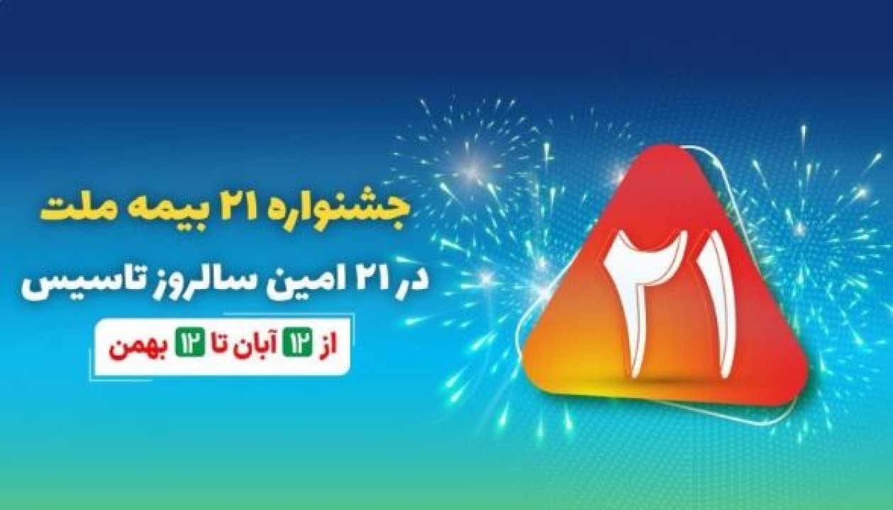 همزمان با بیست و یکمین سالگرد تأسیس شرکت بیمه ملت، جشنوارهای بزرگ با عنوان “جشنواره 21” برگزار میشود. این جشنواره ویژه بیمهنامههای آتشسوزی، بیمه بدنه اتومبیل، حوادث و مسئولیت بوده و به مدت سه ماه از تاریخ 12 آبان تا 12 بهمن ماه ادامه خواهد داشت.