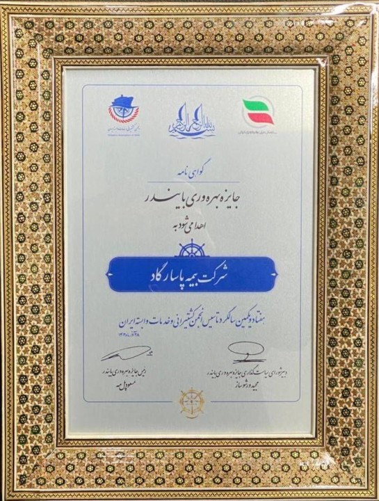 در مراسم نکوداشت هفتادو یکمین سالگرد تأسیس انجمن کشتیرانی و خدمات وابسته ایران ، لوح زرین جشنواره ملی بهره‌وری «بایندر» به شرکت بیمه پاسارگاد اعطاء شد.