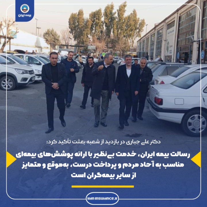رئیس هیئت مدیره و مدیرعامل شرکت سهامی بیمه ایران، ضمن بازدید از شعبه بعثت، ارائه خدمت بی‌نظیر به مردم با پرداخت درست خسارت به‌عنوان یکی از رسالت‌های این شرکت را خواستار شد.