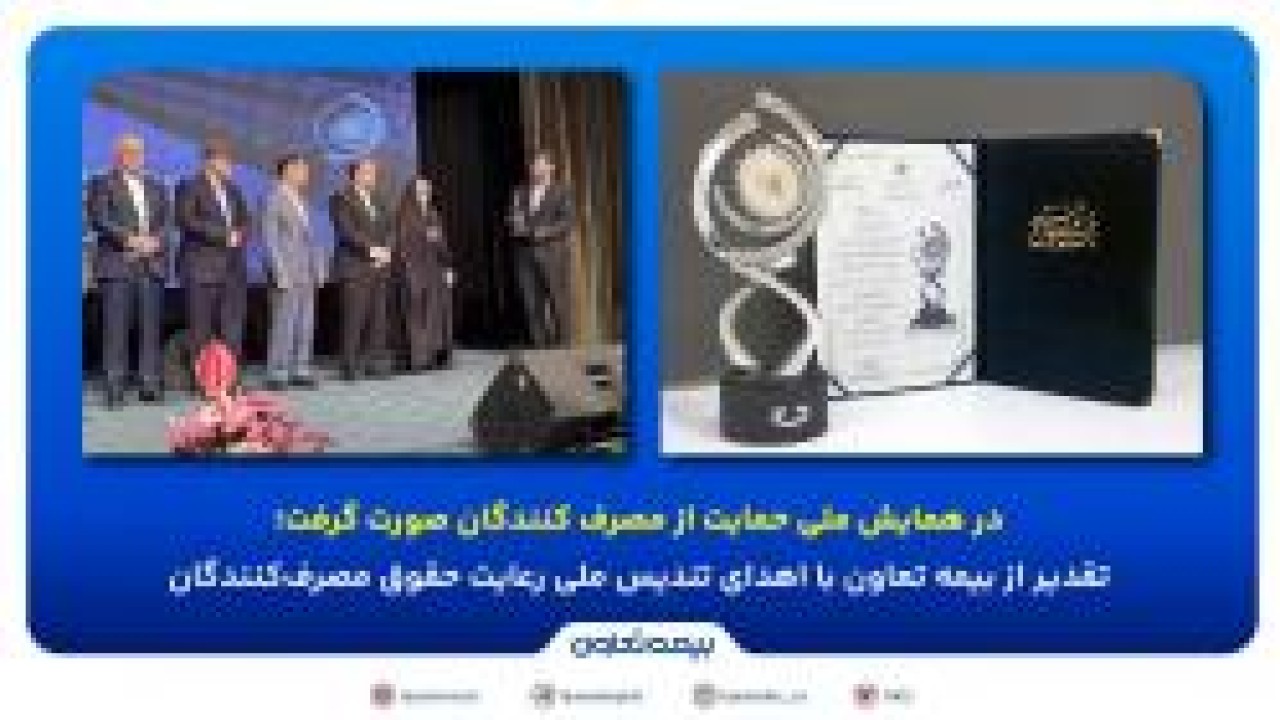 در بیست و سومین همایش ملی حمایت از حقوق مصرفکنندگان که در سالن همایشهای صدا و سیما برگزار شد، شرکت بیمه تعاون به عنوان تنها شرکت بیمهای موفق به دریافت تندیس نقرهای ملی رعایت حقوق مصرفکنندگان شد.